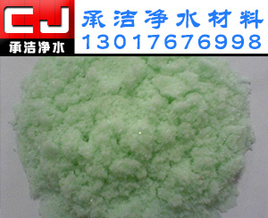 化學(xué)式:FeSO4·7H2O,淡藍(lán)綠色柱狀結(jié)晶或顆粒,無臭,味咸、澀。易溶于水、甘油,不溶于乙醇,有腐蝕性,潮解風(fēng)化。