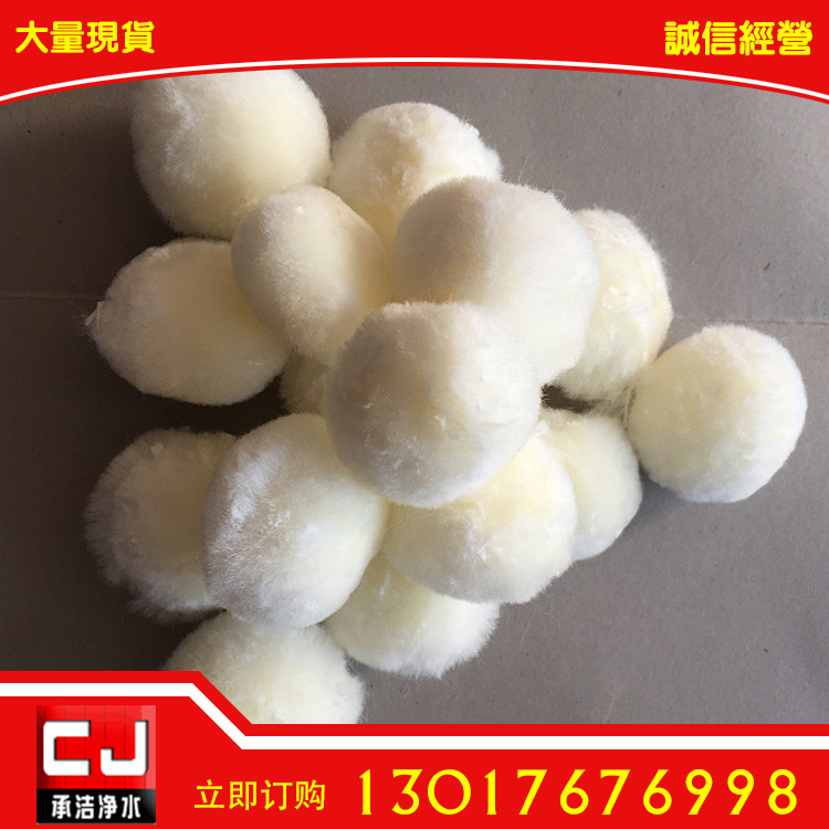 纖維球?yàn)V料是采用優(yōu)質(zhì)滌綸絲結(jié)扎而成,呈白色或淡黃色絨球狀,大小均勻,做工精細(xì),具有較好的彈性效果,不上浮水面、空隙率達(dá)、截污容量大、工作周期長(zhǎng)、過濾效果好、水頭損失小、可再生等優(yōu)點(diǎn)。是目前各種水質(zhì)深度處理及精細(xì)過濾的理想材料。