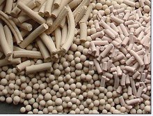 分子篩為粉末狀晶體,有金屬光澤,硬度為3~5,相對(duì)密度為2~2.8,天然沸石有顏色,合成沸石為白色,不溶于水,熱穩(wěn)定性和耐酸性隨著SiO2/Al2O3組成比的增加而提高。分子篩有很大的比表面積,達(dá)300~1000m2/g,內(nèi)晶表面高度極化,為一類高效吸附劑,也是一類固體酸,表面有很高的酸濃度與酸強(qiáng)度,能引起正碳離子型的催化反應(yīng)。當(dāng)組成中的金屬離子與溶液中其他離子進(jìn)行交換時(shí),可調(diào)整孔徑,改變其吸附性質(zhì)與催化性質(zhì),從而制得不同性能的分子篩催化劑。